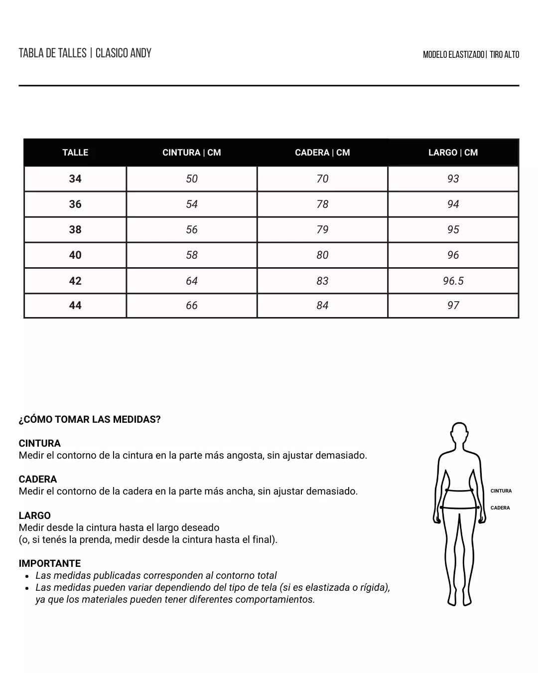 Recomendable Pedir un talle más cintura muy ajustada