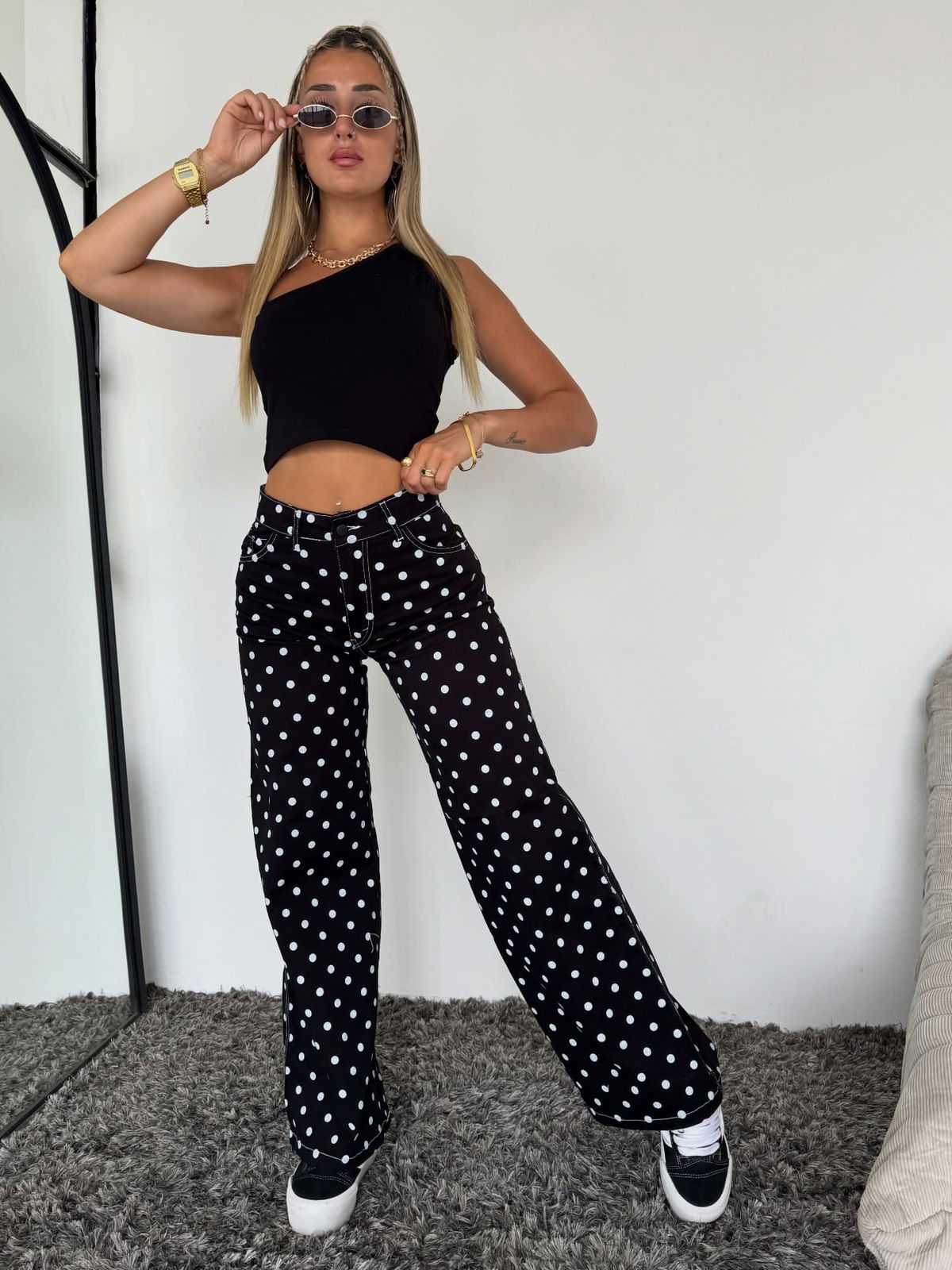 DISEÑO DE LUNARES DISTRIBUIDOS EN TODO EL DENIM